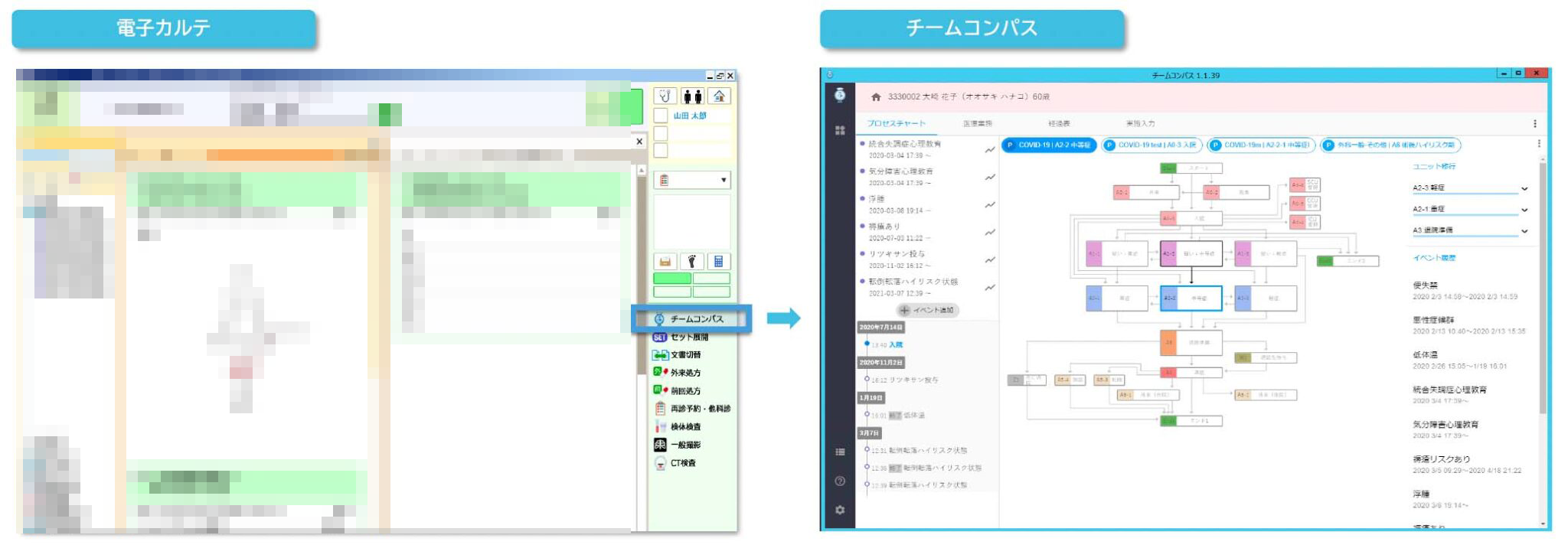当該患者さんの電子カルテ上にショートカットアイコンが追加されチームコンパスが起動します。